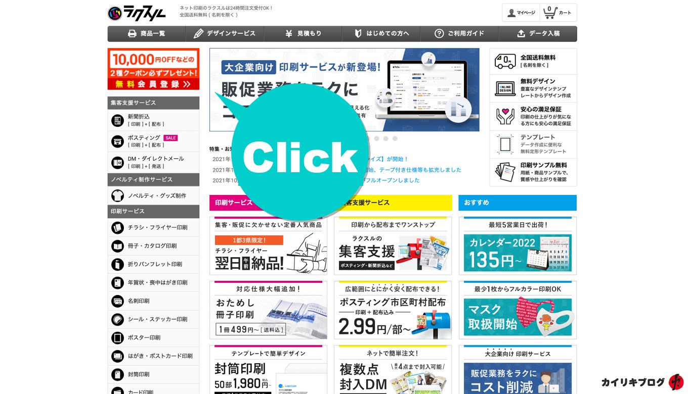 ミスなく印刷したいならラクスル、こちらのリンクからアクセスすれば新規登録10,000円OFFのクーポンが付いてきます!