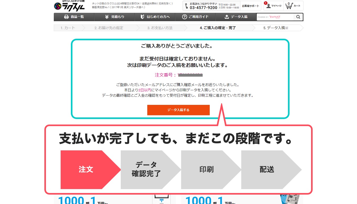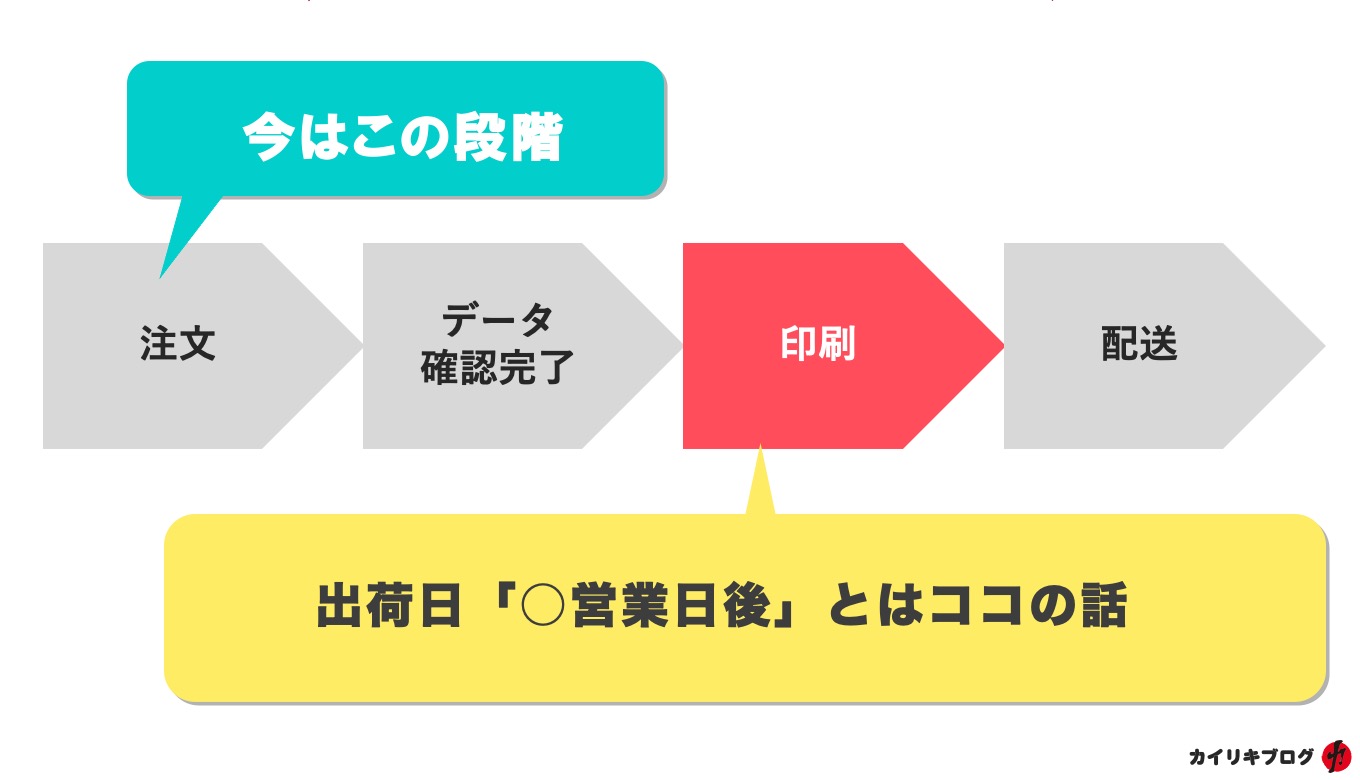 ホームページに出荷日は「受付日から○営業日後」と書かれていますが、これは今から○日後に届くということではありません。データ確認完了からの印刷日数を指しています。
